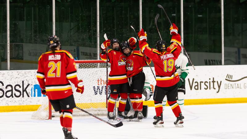 With momentum on its side, the Huskie women's hockey team prepares to host the Canada West east division leading Calgary Dinos this weekend. Saskatchewan swept Manitoba with 3-1 and 2-1 (shootout) wins during the October 31-November 1st weekend and sit three points back of Calgary entering this big series at Merlis Bel...