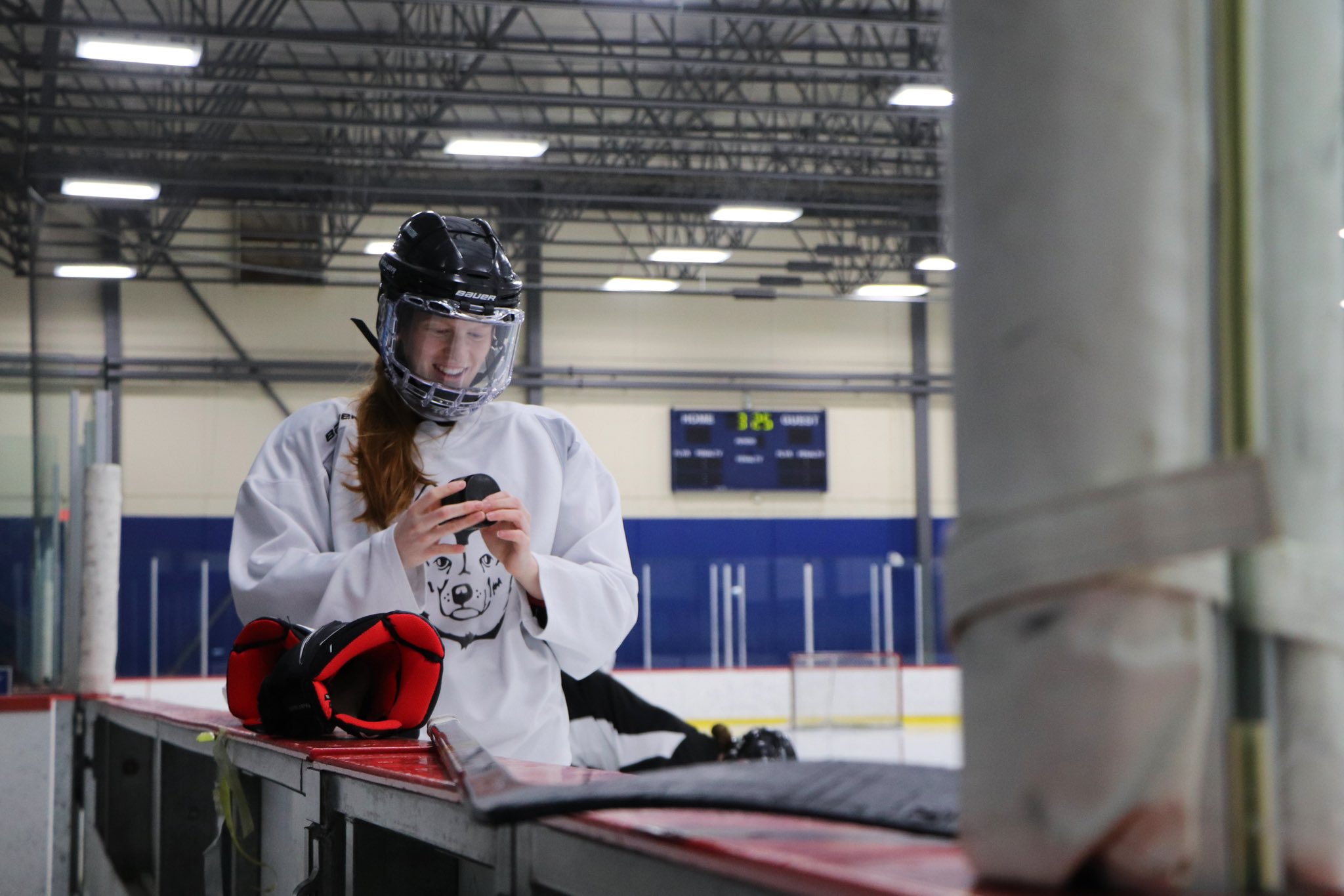 Huskies captain Bailee Bourassa prepares to take the ice for a shortened practice at the UBC Thunderbirds arena on March 10, 2022. (Daniella Ponticelli/HuskieFAN)