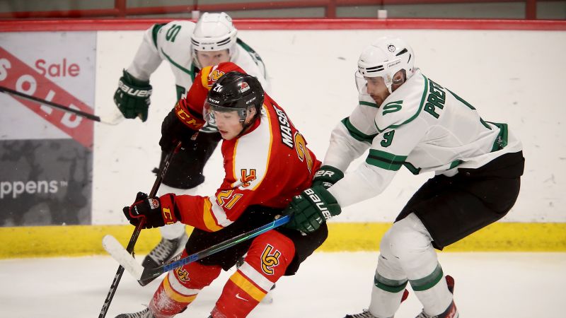 The Dinos scored twice on the five minute power play that followed. Max Patterson scored both goals at 11:06 and 12:09. “I think there was a trip or slough foot that got Connor a little fired up”, said Huskie assistant coach Michael Babcock. “If you break down the hit slowly, he (Hobbs) is not trying to target the head, but unfortunately that was the main point of contact and the ref has to make a call”.