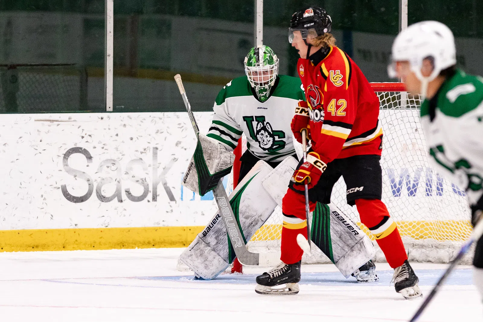 After being upset by the four-win Regina Cougars on January 30th by a score of 5-4, the Huskies rebounded with a 4-0 shutout win over the U of R on February 1st in Regina. First-year goaltender Bryan Thompson earned the shutout and now has the best save percentage in the conference. Forward Connor Roulette scored once in the Sunday win and leads all rookie scorers with 31 points in 24 games.