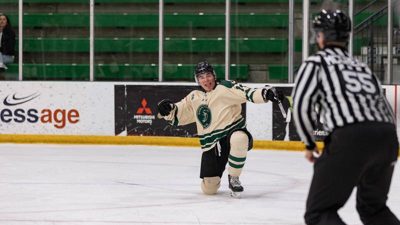 The Huskies men's hockey team is heading home with three big points thanks to a 5-3 win over the Mount Royal Cougars on Saturday night in Calgary.Chase Bertholet tallied twice and Ethan Regnier scored...